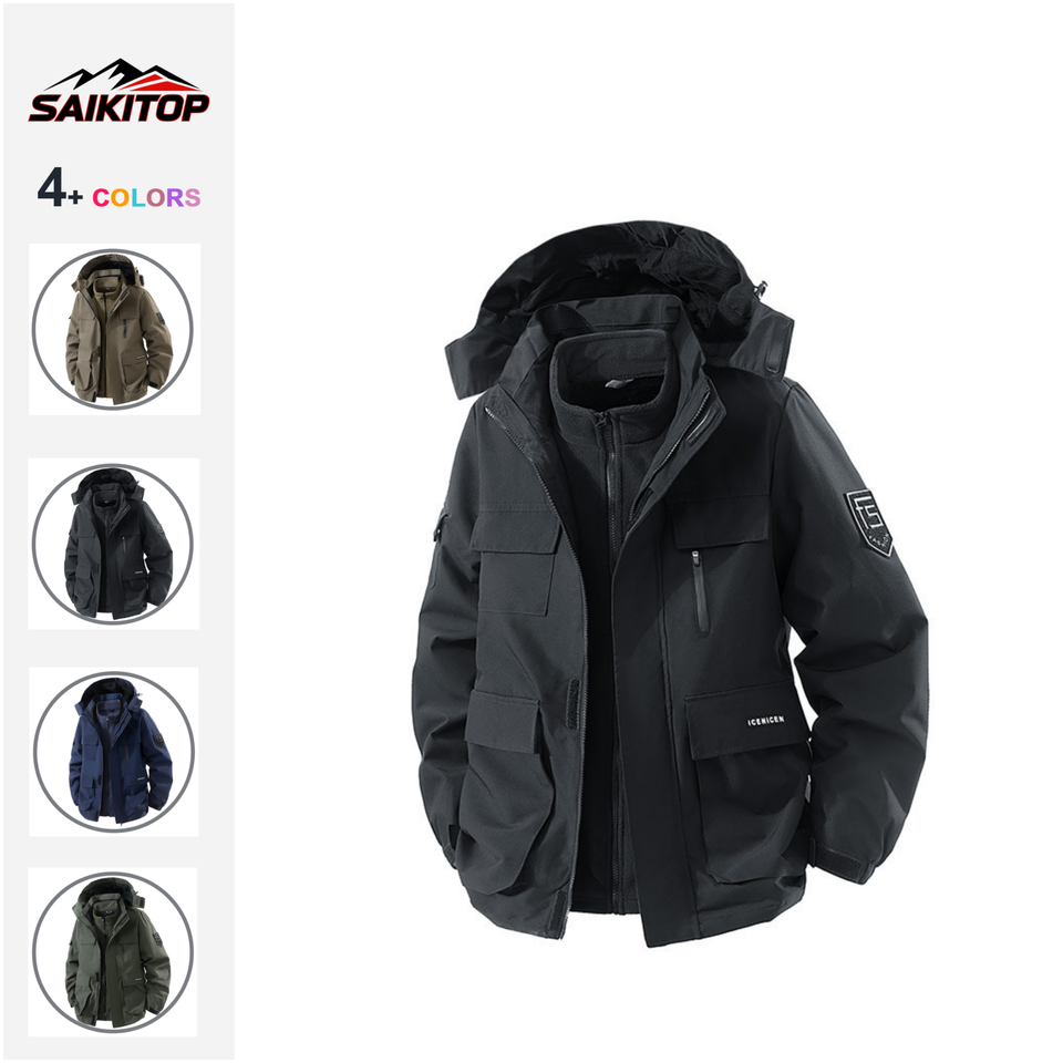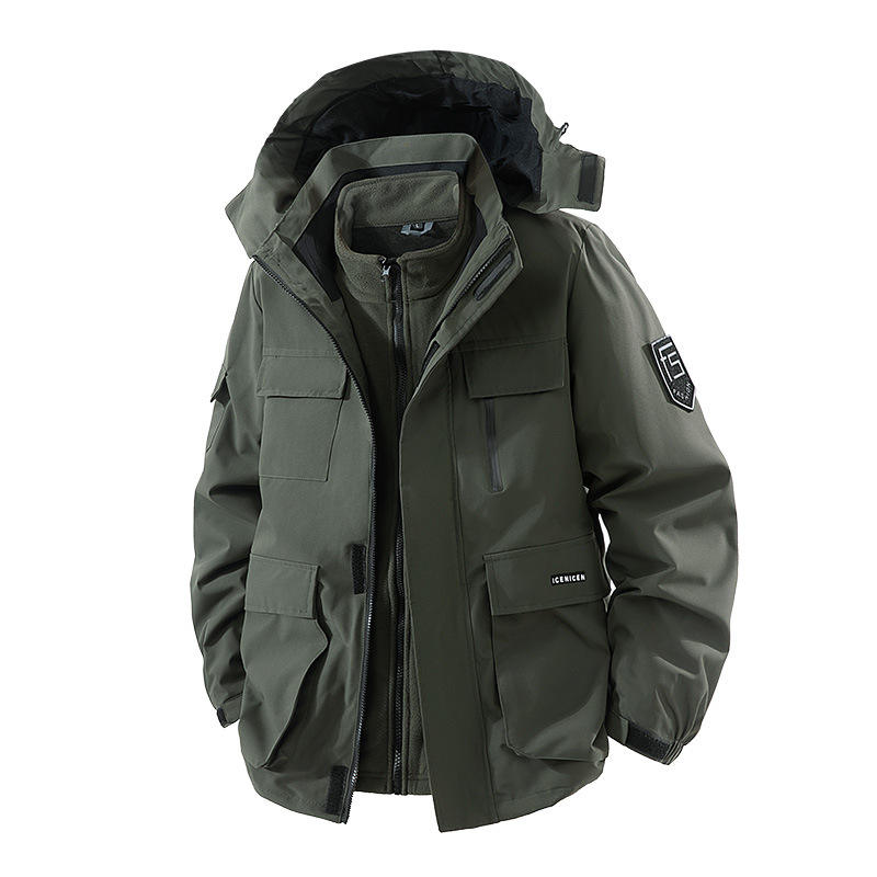 Ensemble deux pièces d'extérieur pour l'automne et l'hiver, veste de travail trois en un, coupe-vent et chaude pour hommes