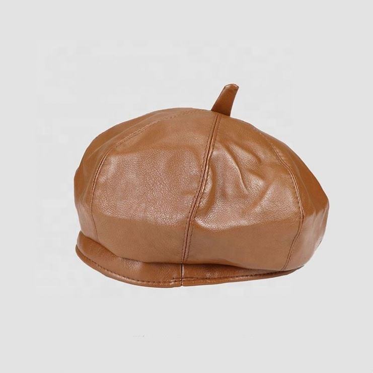 Automne et hiver béret en cuir PU femmes chapeau octogonal en cuir rétro britannique noir