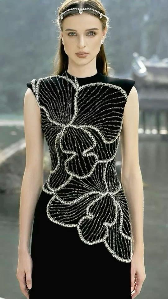 Ensemble chic en tweed brodé écologique de luxe pour l'automne et l'hiver, manteau court à perles + robe à bretelles, deux pièces, pour mariage, bureau, femme élégante