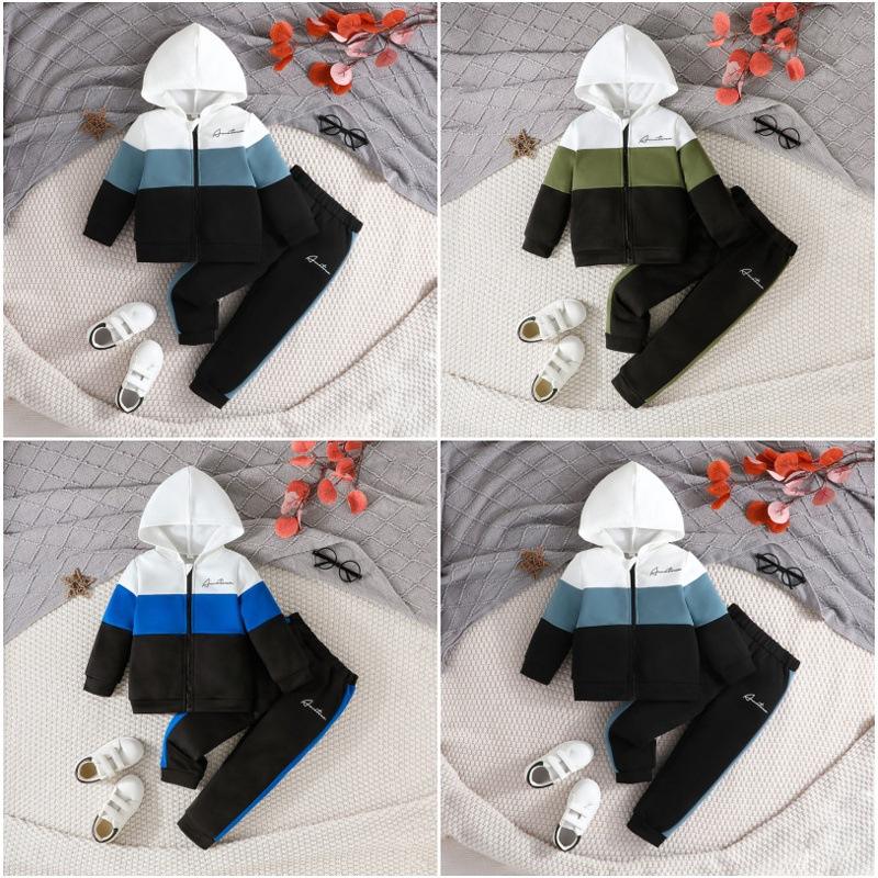 Automne et hiver ensemble deux pièces pour bébé garçons veste à capuche en coton avec pantalon imprimé décontracté Joker sport caractéristiques chaudes