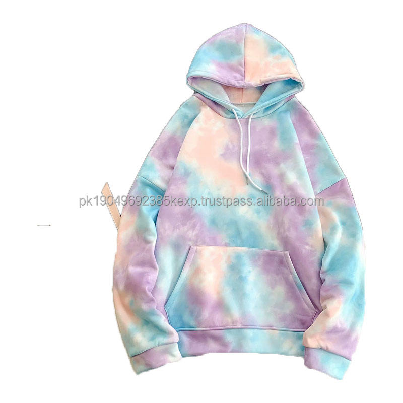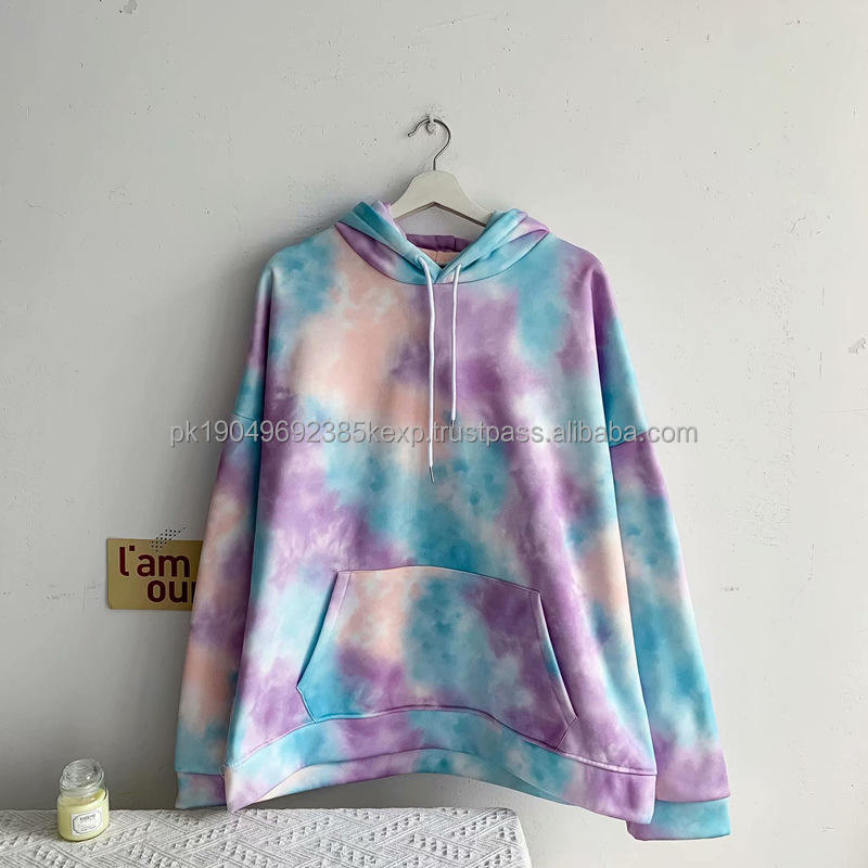 AutumnWinter ODM Tie Dye Hoodie for Women Cotton Fabric with Front Logo Loose Print Hooded Fleece Formal Style