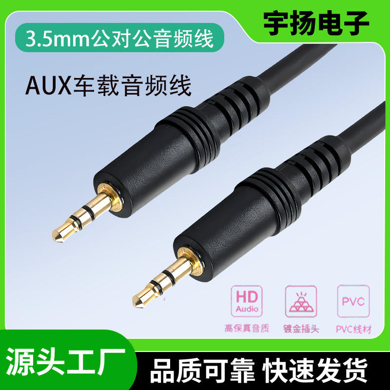 Câble audio auxiliaire 3,5 mm mâle-mâle pour connexion audio de voiture, gaine en PVC