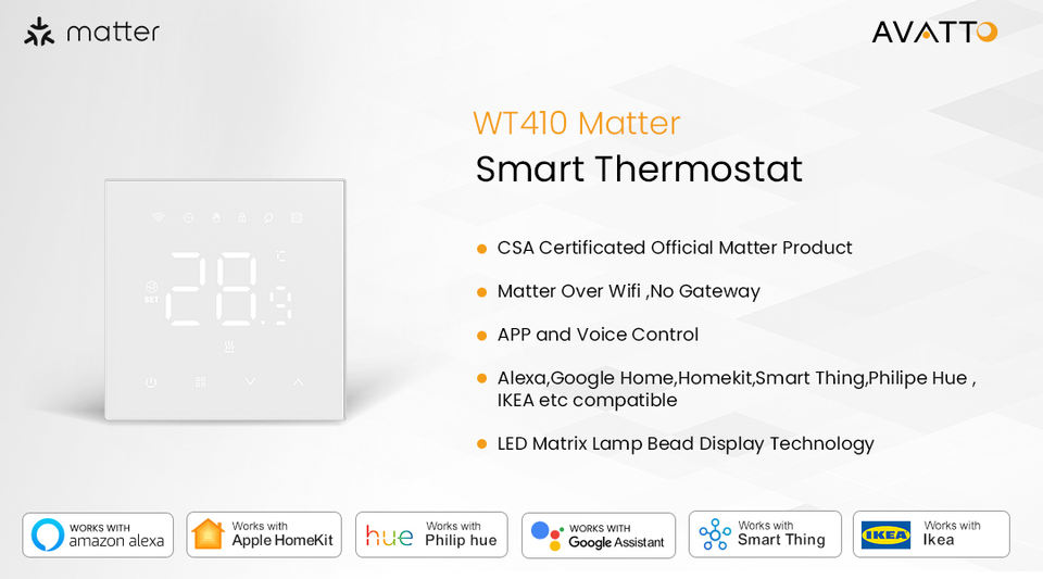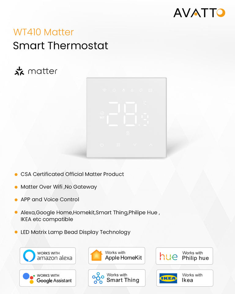 Thermostat Programmable Avatto WT410 Tuya WiFi à Écran Numérique pour Chauffage au Sol Électrique, Compatible Google Home et Alexa