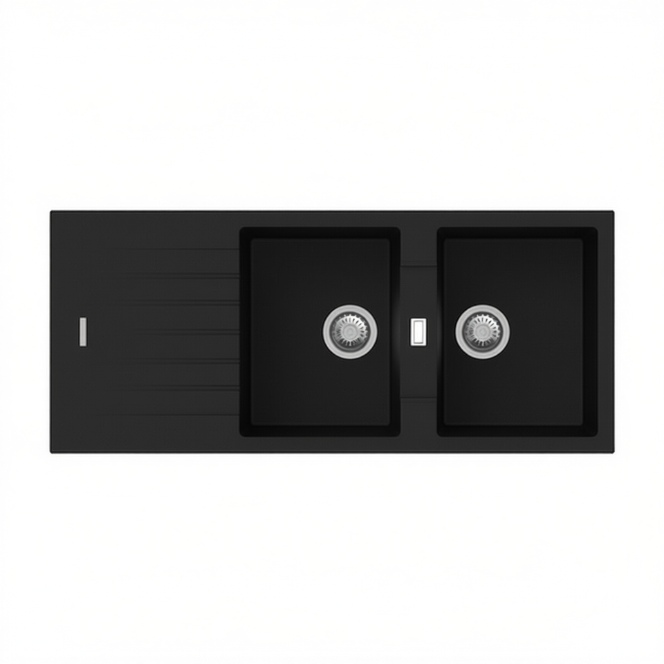 Évier de cuisine encastré Avena à 2 bacs en synthétique, longueur 127 cm