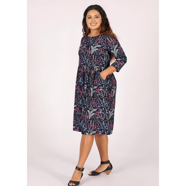 Avery 100% Cotton Bohemian Dress Obsidian Floral Print Knee-Length for Summer Spring Autumn Daily Use Washable Casual Style
