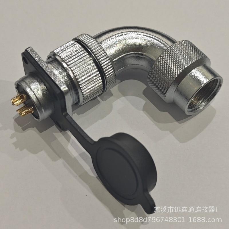 Connecteur d'aviation WS20 coudé 2-15P à montage sur panneau, adaptateur en alliage de cuivre et de zinc plaqué or, faisceau de câblage