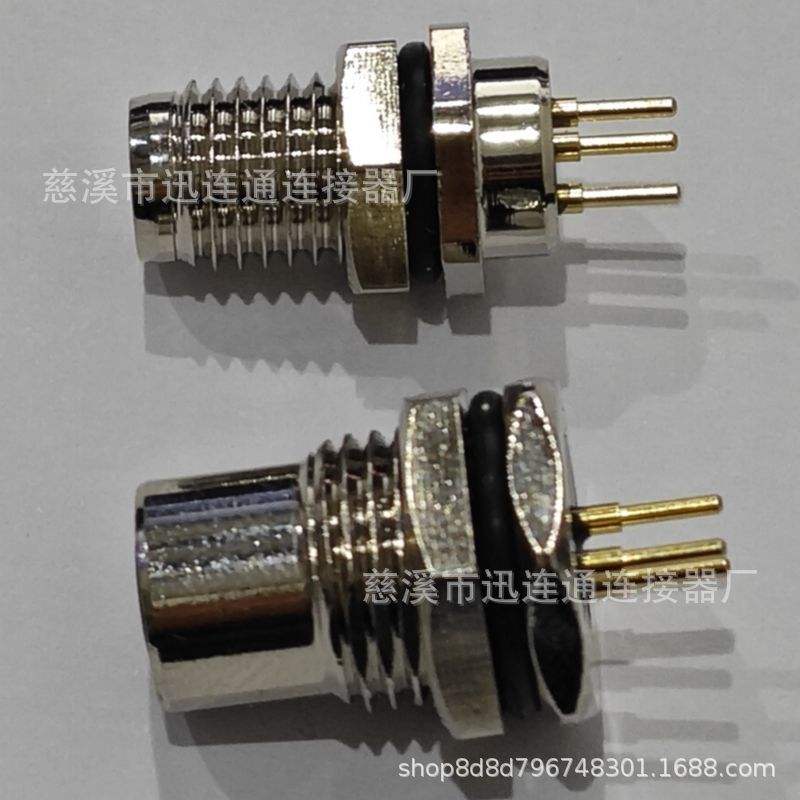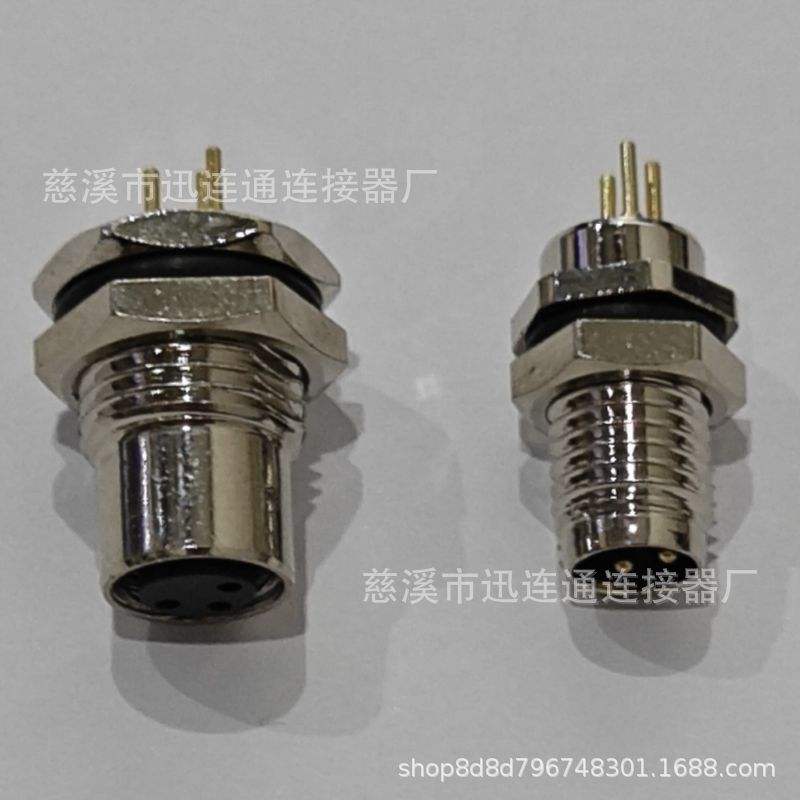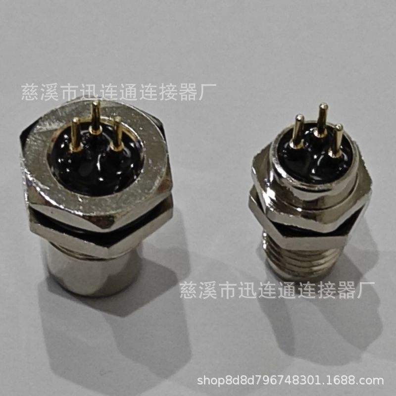 Connecteur Aviation M8 3/4 broches plaqué or étanche pour capteur, montage sur carte PCB et panneau, boîtier en cuivre