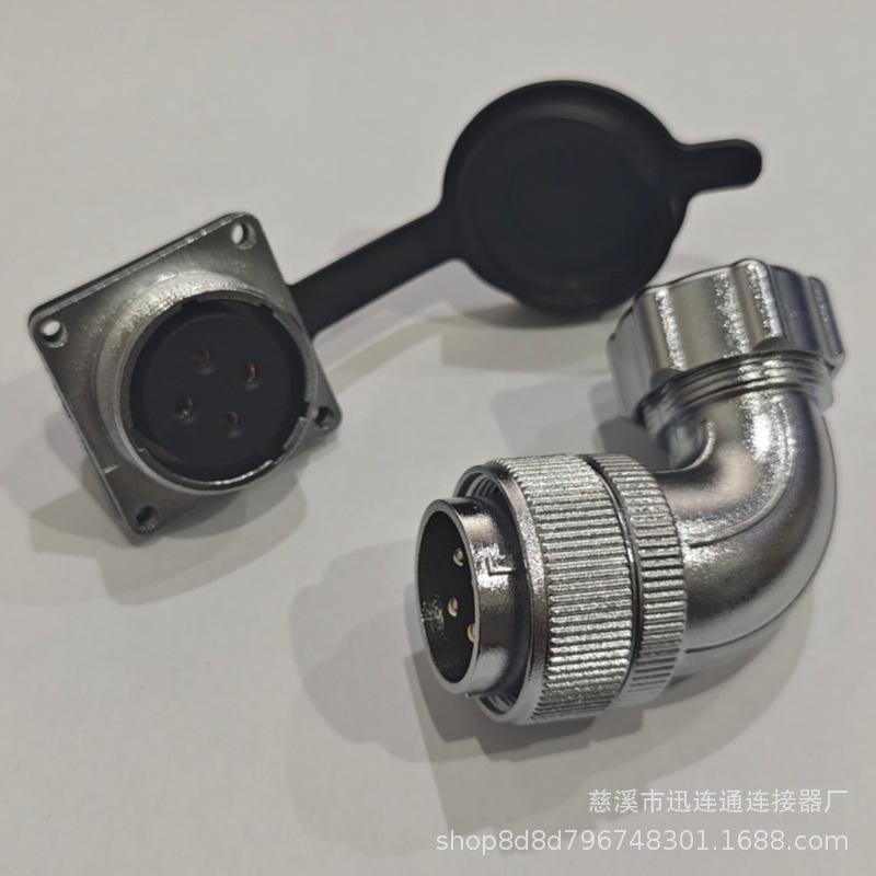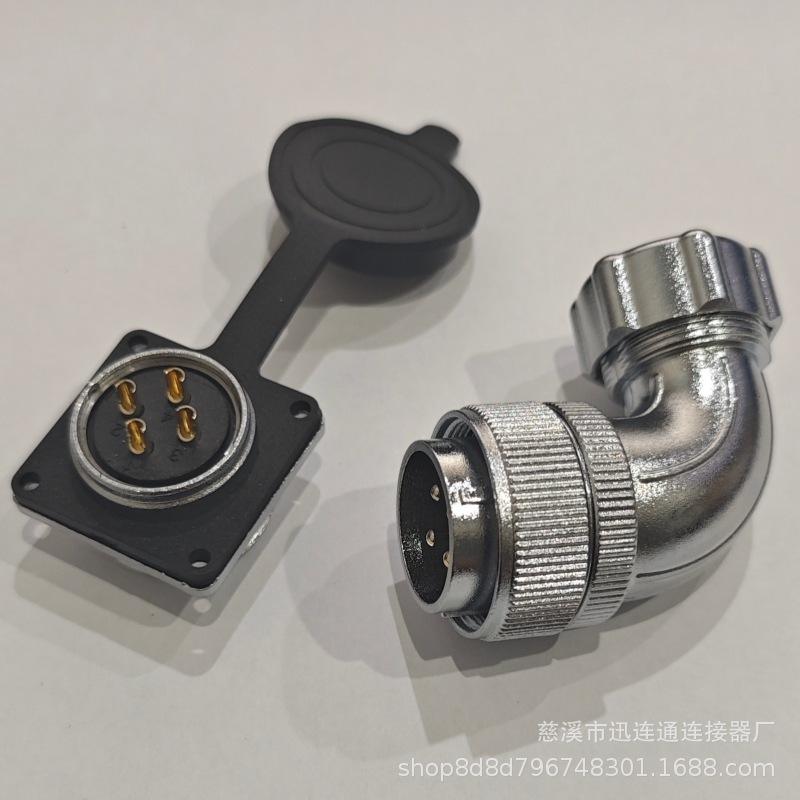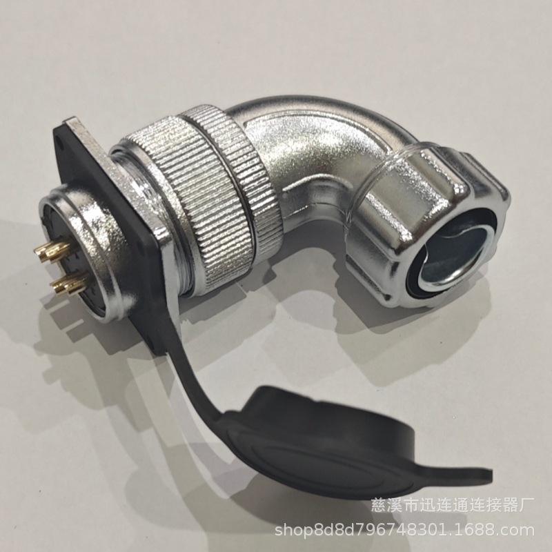Connecteur d'aviation coudé WS28 2-35P en alliage de zinc, montage sur panneau, contact en cuivre plaqué or pour équipement mécanique