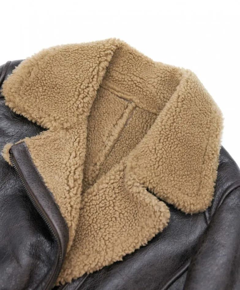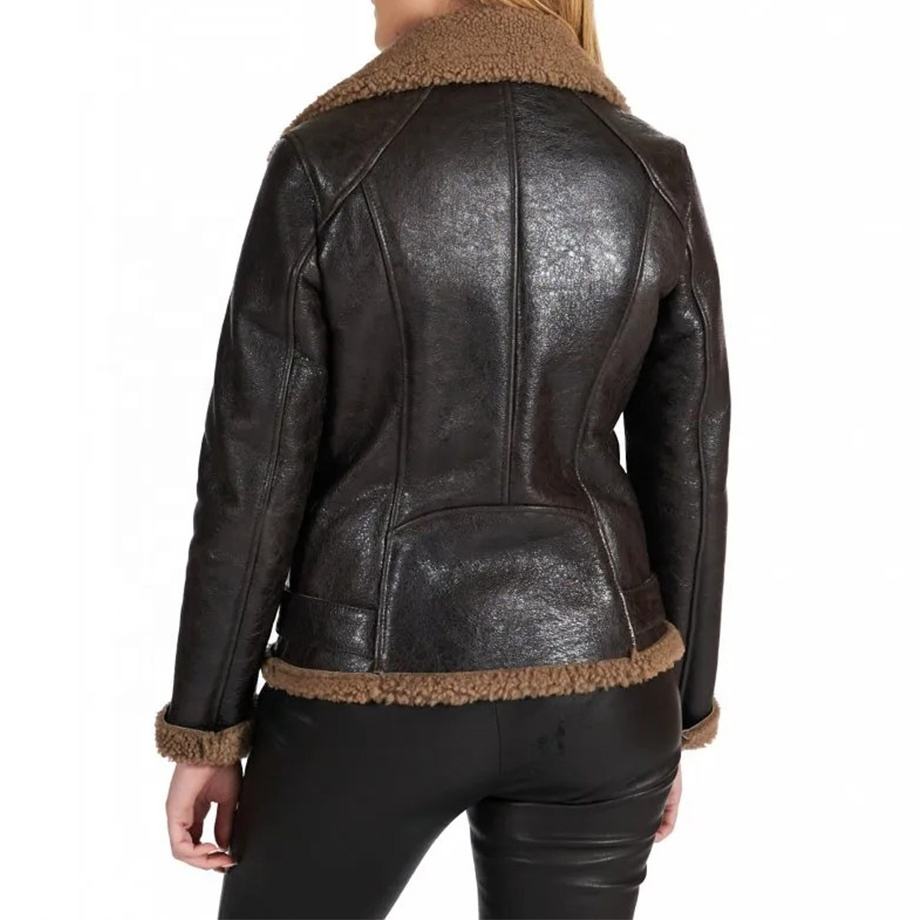 Aviator Style Sheepskin Leather Jacket for Women Breathable Genuine Leather Winter Fox Fur Collar