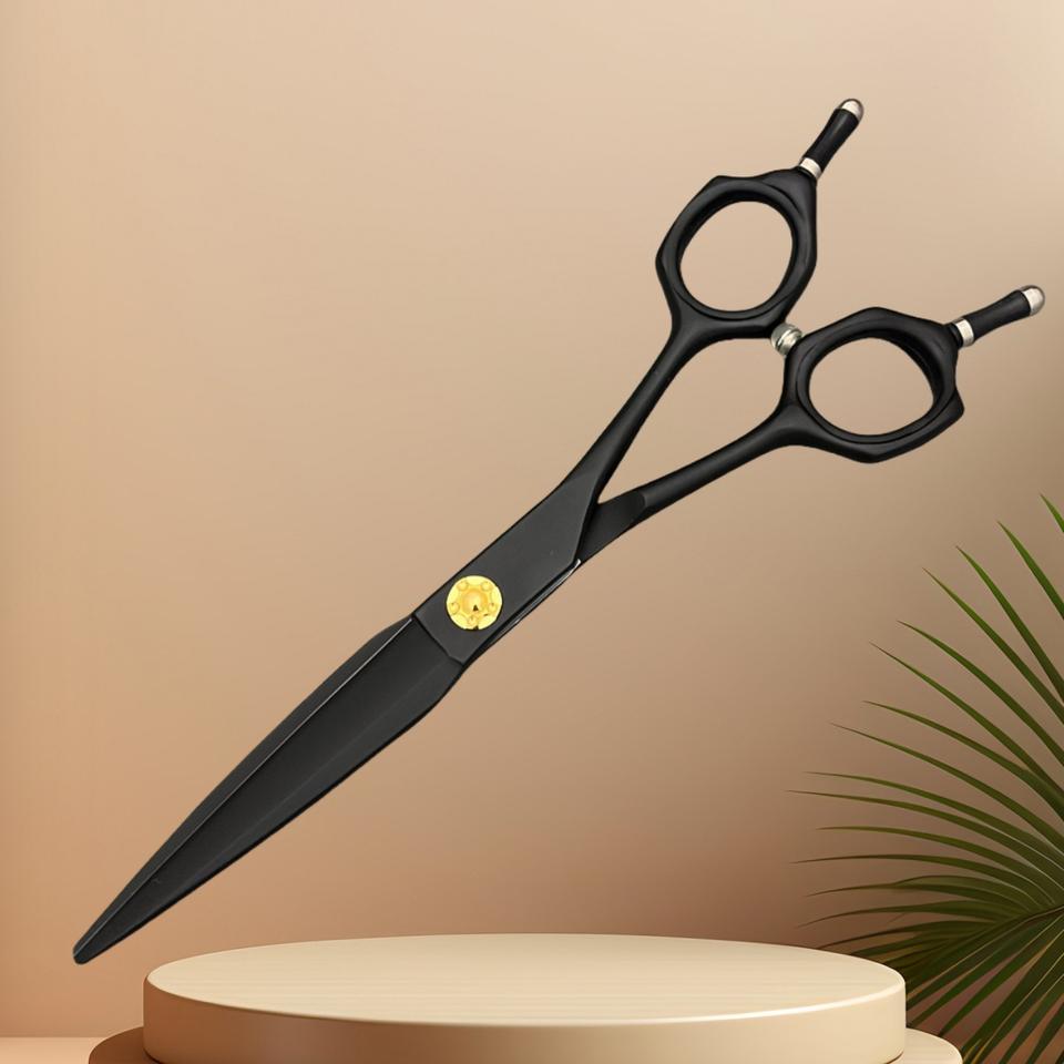 Ciseaux à cheveux plats noirs de 6 pouces, ciseaux de barbier professionnels, pour droitiers, en acier inoxydable, revêtement en téflon, outil de beauté