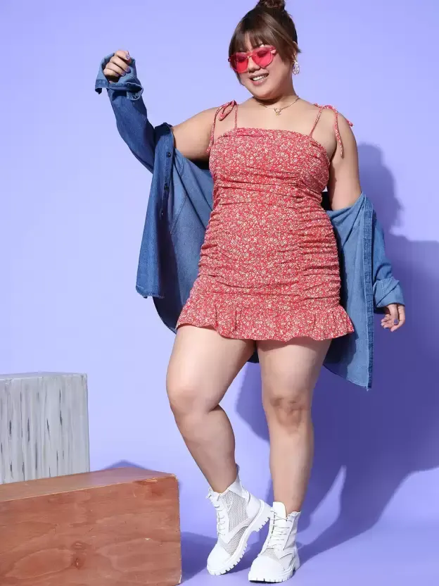 Impressionnant à la recherche haut rouge couleur robe florale été dos profond robe mi-longue imprimé fleuri motif conception personnalisé femmes robes décontractées