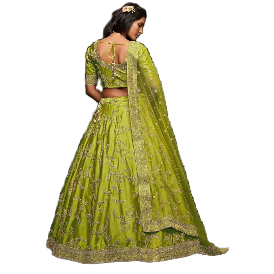 Impressionnant mariage en soie vert néon Lehenga Choli avec broderie Art robes de mariée élégantes