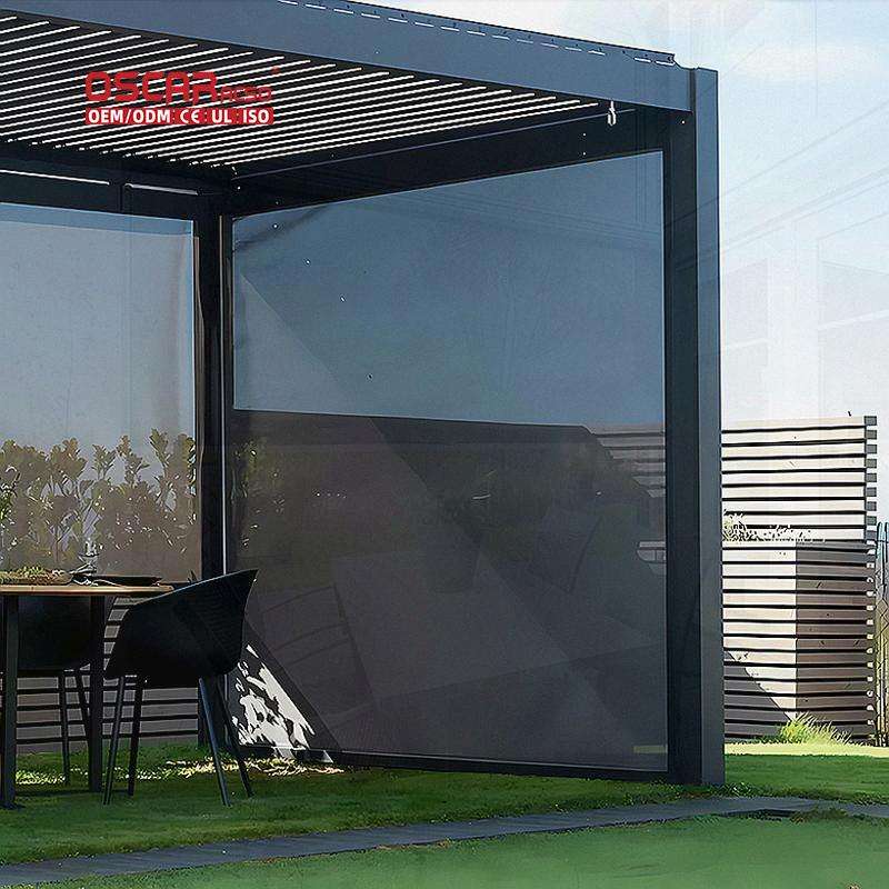Auvents avec panneaux latéraux en polyester, protection contre les intempéries, moustiquaire, télécommande, pour patio, jardin, balcon, volet roulant