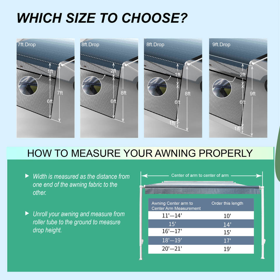 Selon la taille de l'auvent (8-21ft)Taille de largeur de bloqueur de soleil