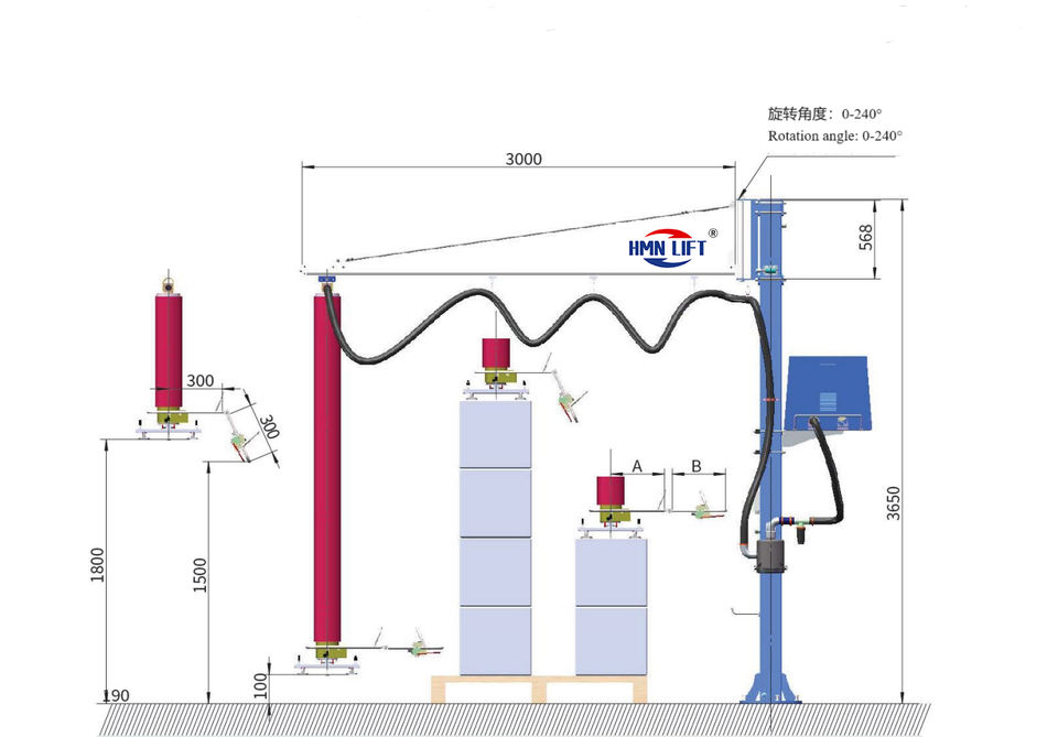 Awovolift CE Produit avec bras et colonne Chargement et déchargement Sac Seau Ventouse à vide Tube à air Lève-vide
