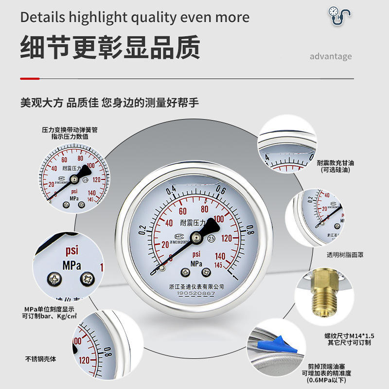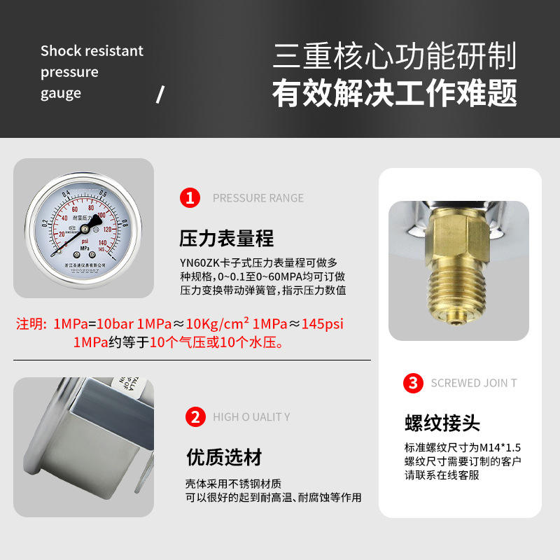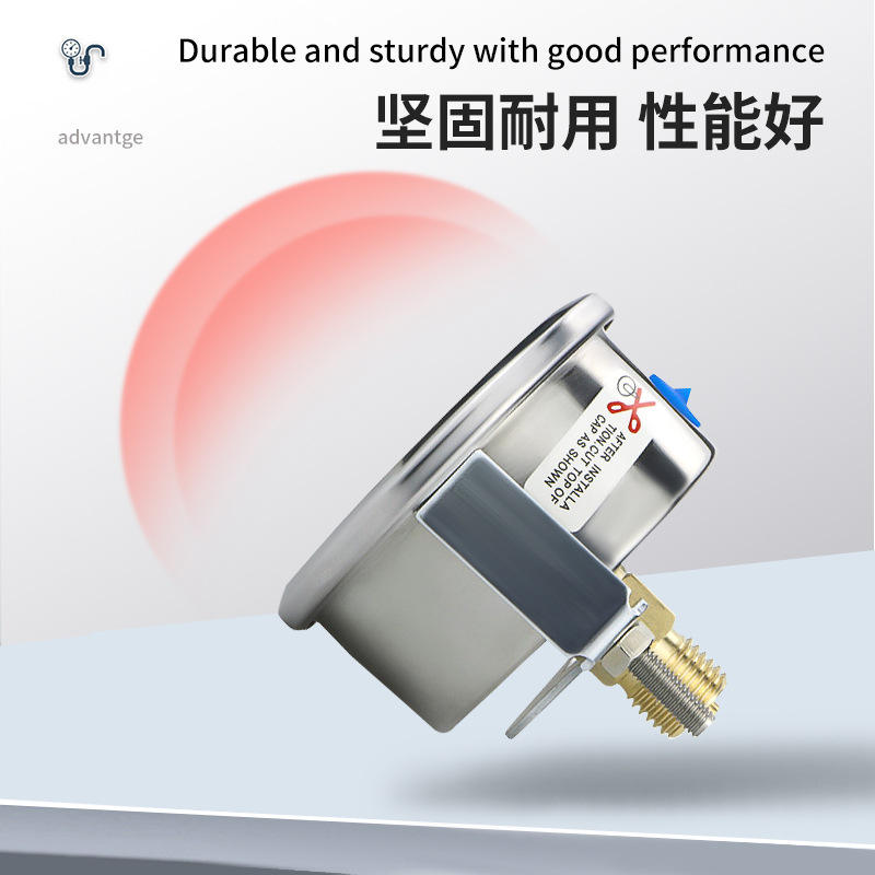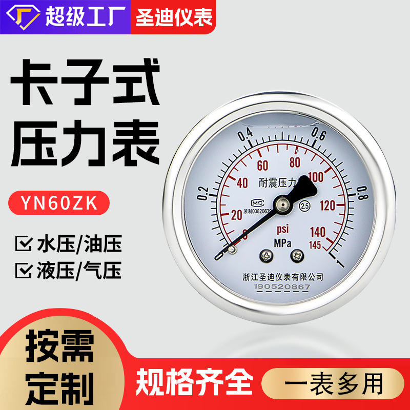 Manomètre axial sans bordure, de type pince, résistant aux chocs, YN60ZK, connexion filetée radiale de précision, résistant aux chocs