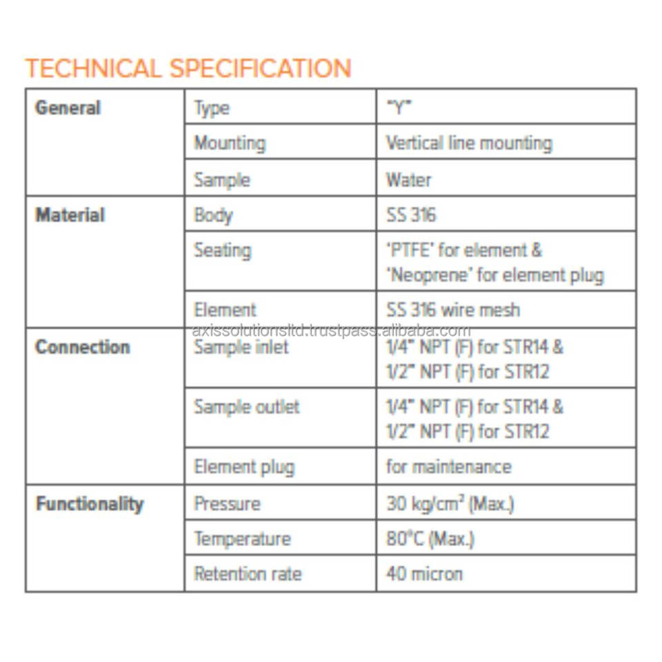 Filtre à tamis de type Y en PTFE/Néoprène, vanne de filtration industrielle, maille en acier inoxydable 316, taux de rétention de 40 microns, garantie 1 an, 30 kg/cm²