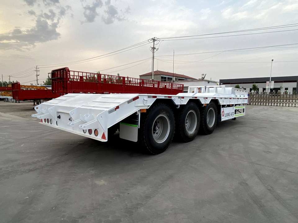 Semi-remorque à essieu bas avec plateforme de chargement large, haute capacité de charge pour le transport de grues et de chargeurs