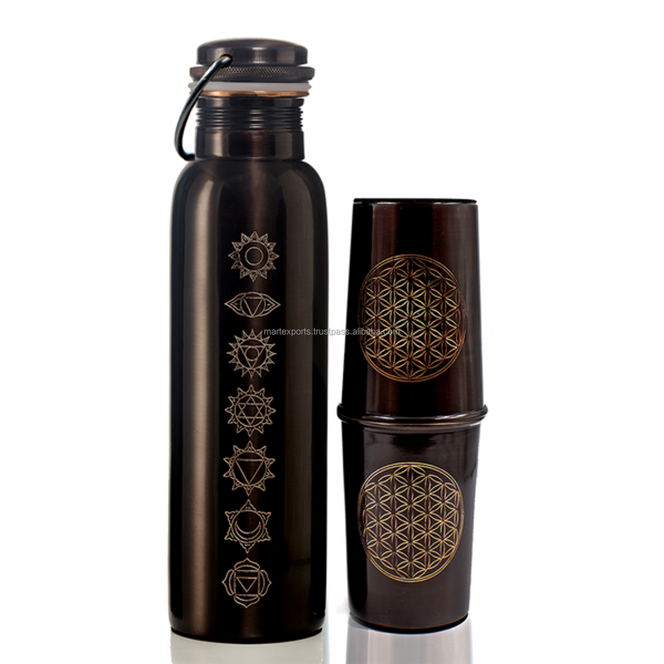 Bouteille d'eau en cuivre pur ayurvédique 1000ml fabriquée à la main conception étanche écologique boisson directe santé verres en plastique