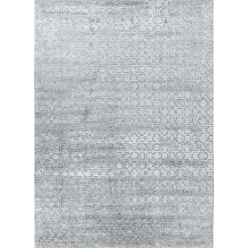 Tapis en laine et soie de bambou noué à la main bleu azalée, motif géométrique en losanges, pour salon, couloir, usage domestique - AIWB-13024