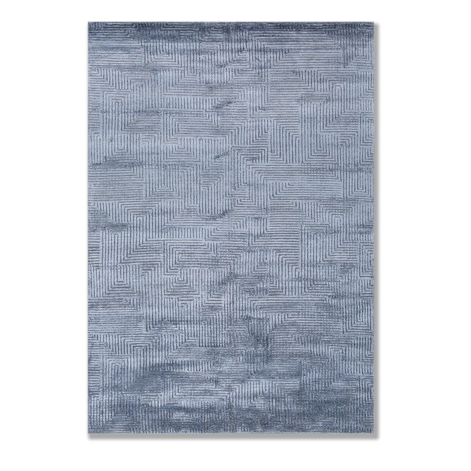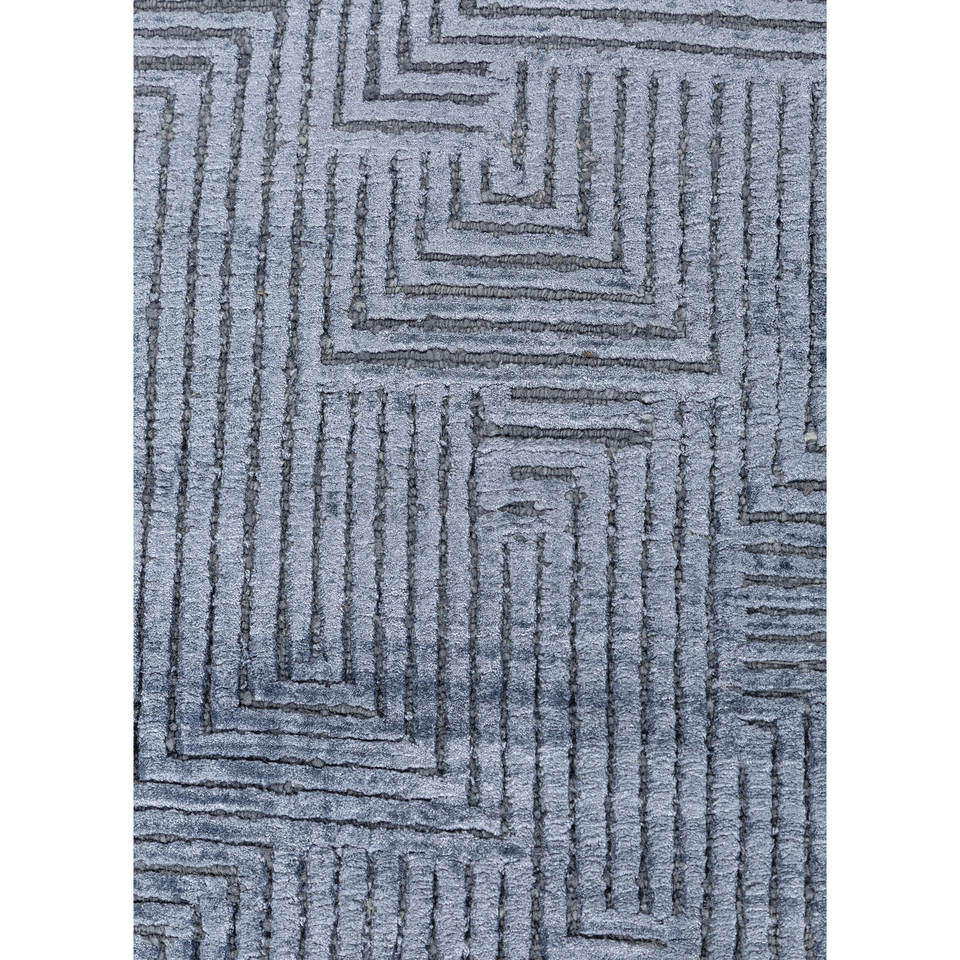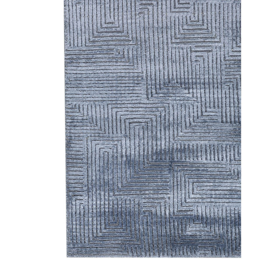 Tapis en laine et soie de bambou noué à la main bleu azalée, motif géométrique abstrait pour la maison, couloir, modèle rectangulaire AIWB-13025 pour adolescents