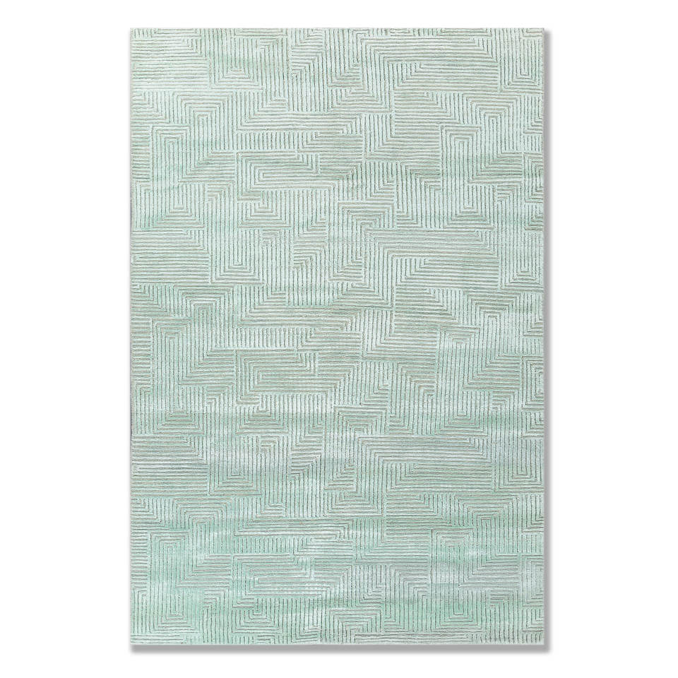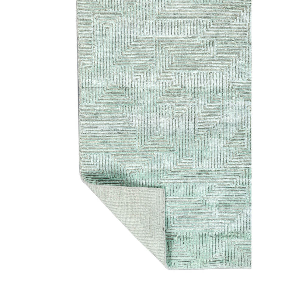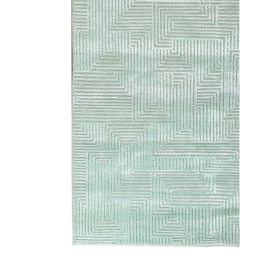 Tapis en laine et soie de bambou noué à la main bleu azalée, motif géométrique abstrait pour la maison, couloir, modèle rectangulaire AIWB-13025 pour adolescents