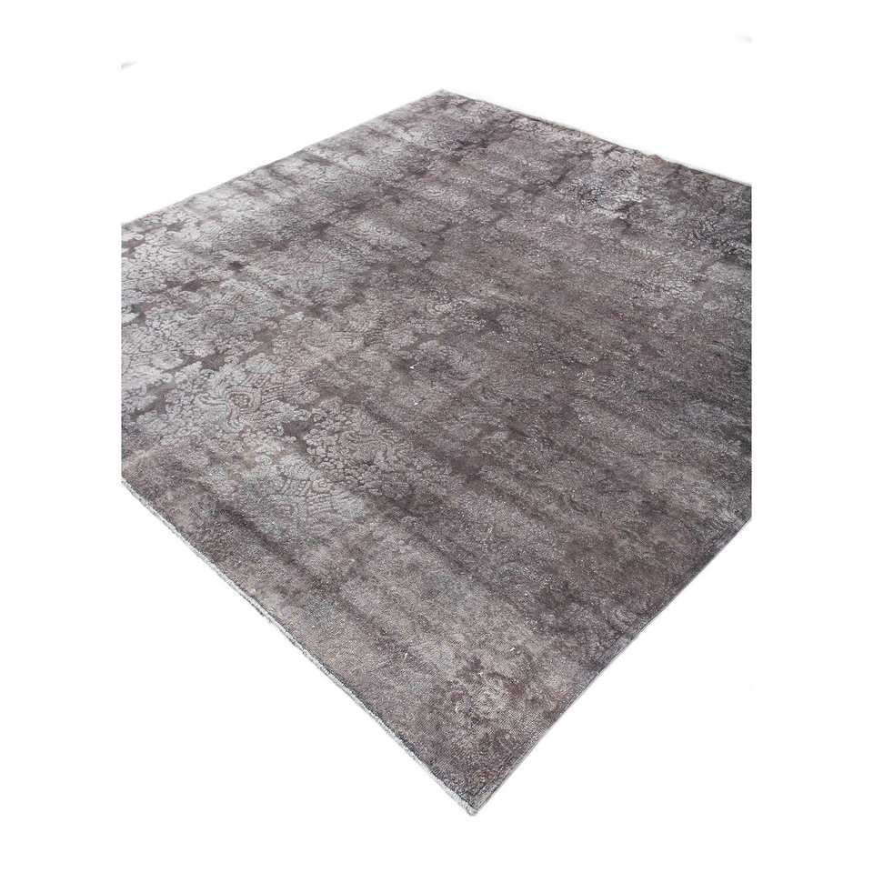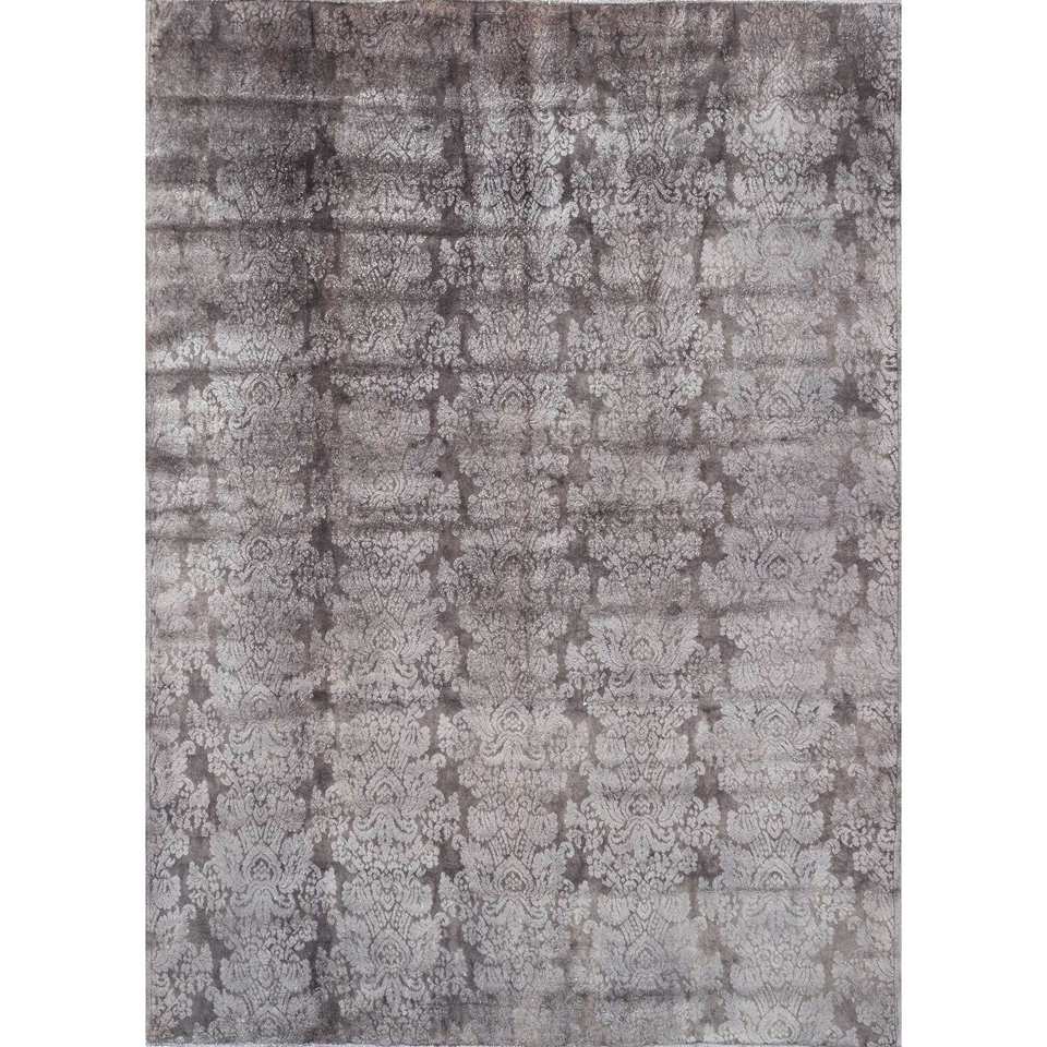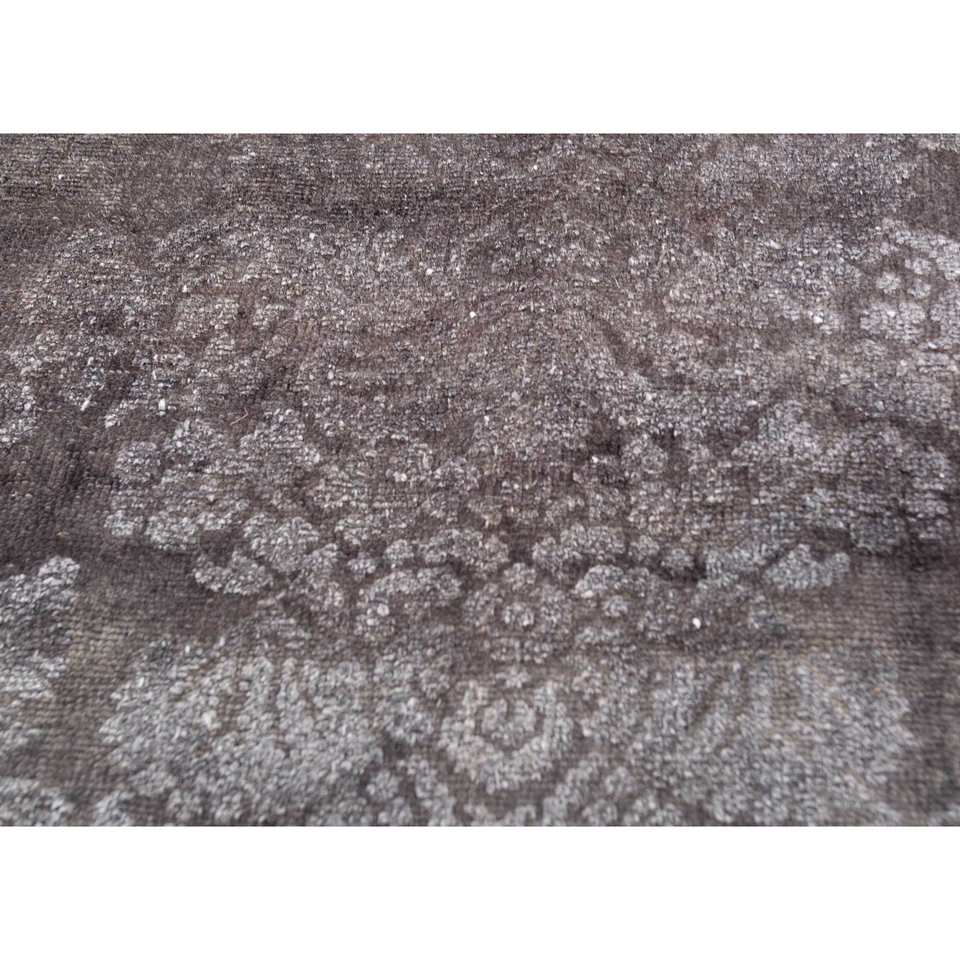 Tapis Azalea en laine et soie noué à la main, motif floral et abstrait, Pae-6120, rectangulaire, pour chambre et couloir, modèle de tapis de chambre, gris et noir