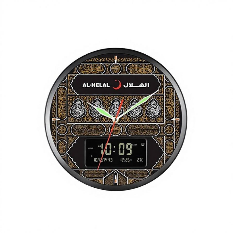 Horloge Azan avec GPS, interface tactile et géolocalisation automatique, intégrant une géométrie islamique inspirée des jardins japonais, avec des motifs de sable ciselé pour