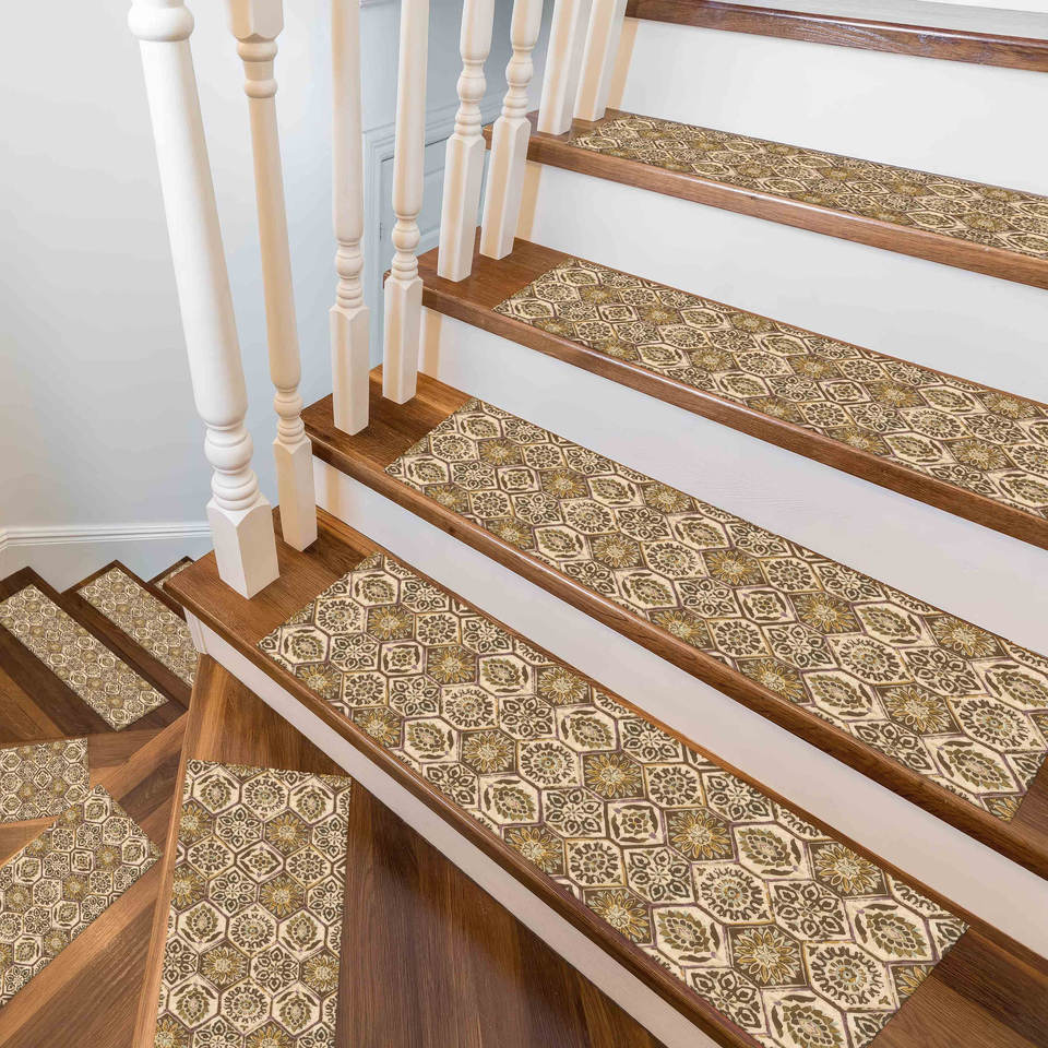Tapis imprimé aztèque : motif ethnique moderne, beige et marron, lavable en machine, antidérapant, gobelin