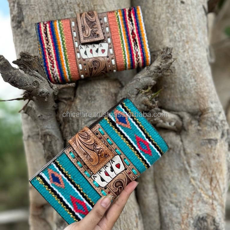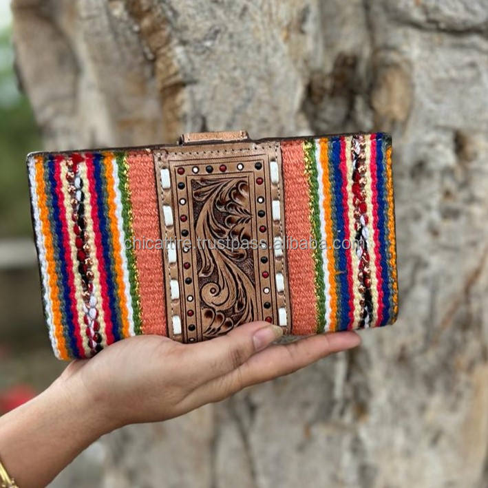 Product name:Designer Tooled Aztec Leather Clutch