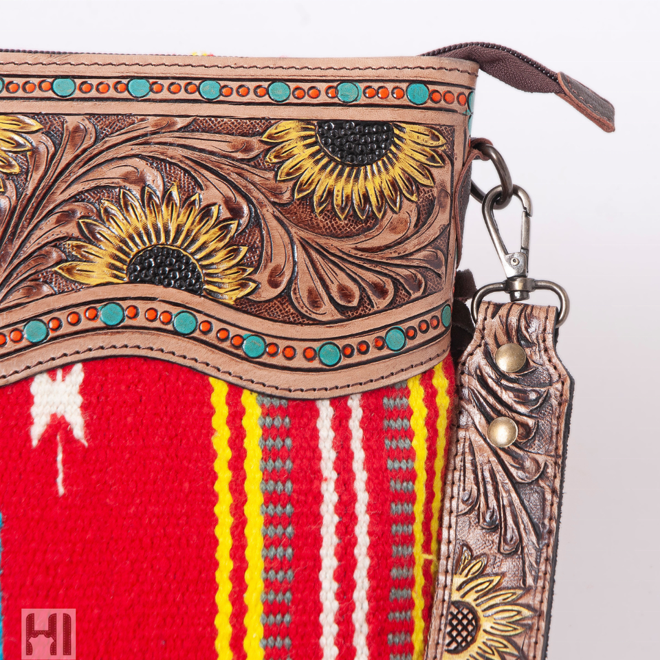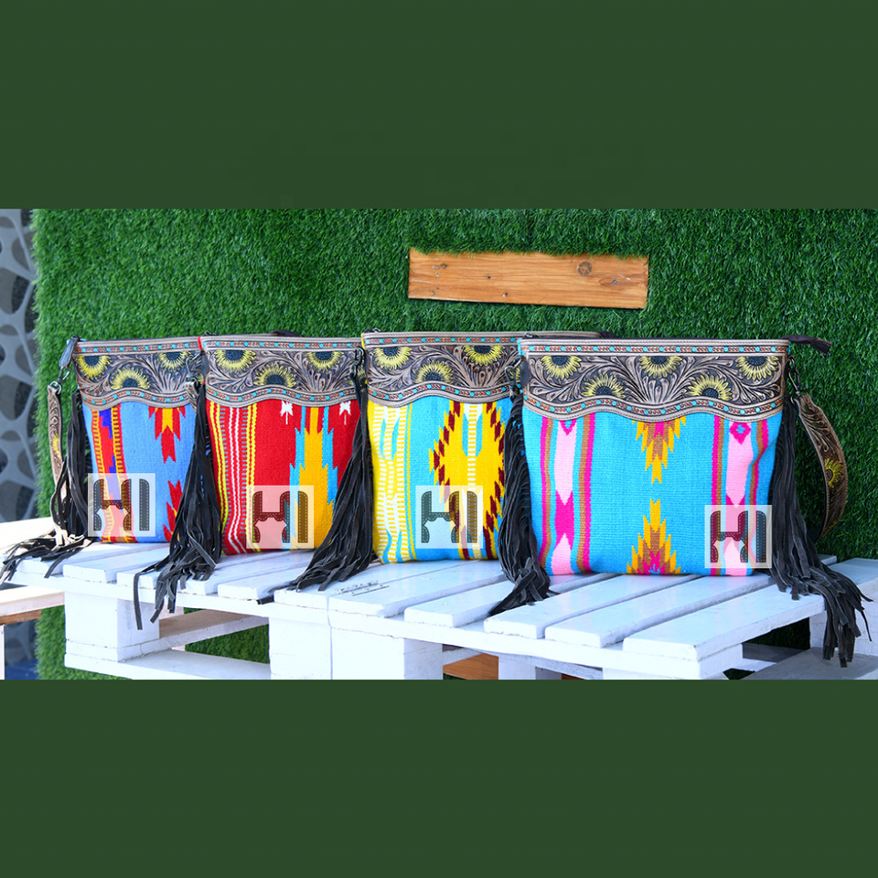 Sac à bandoulière en laine style aztèque, sac à main western