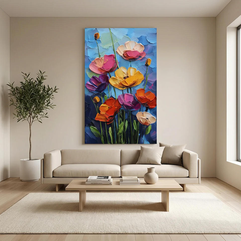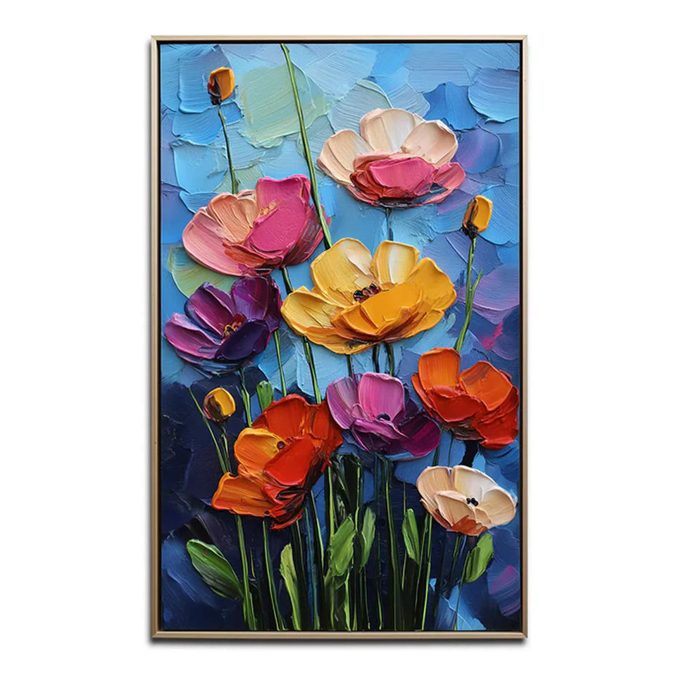 Peinture abstraite contemporaine texturée faite à la main Azure Bloom Garden sur toile, grande décoration murale pour hôtels