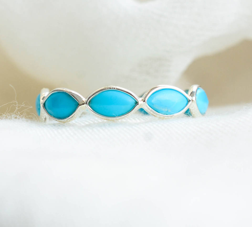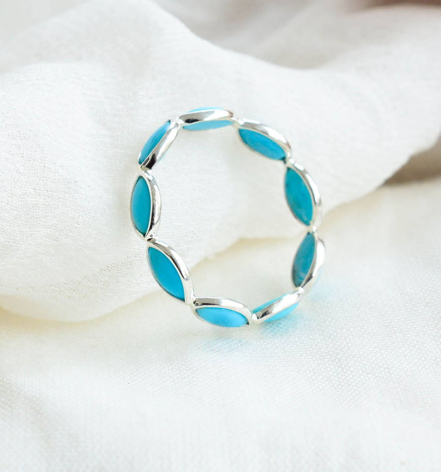 Bague éternelle Azure Horizon Marquise Turquoise en argent sterling 925, style tendance, à vendre