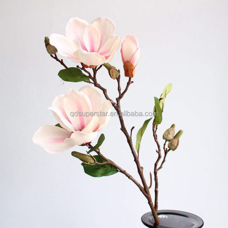 Fleurs artificielles de magnolia en soie à 3 branches