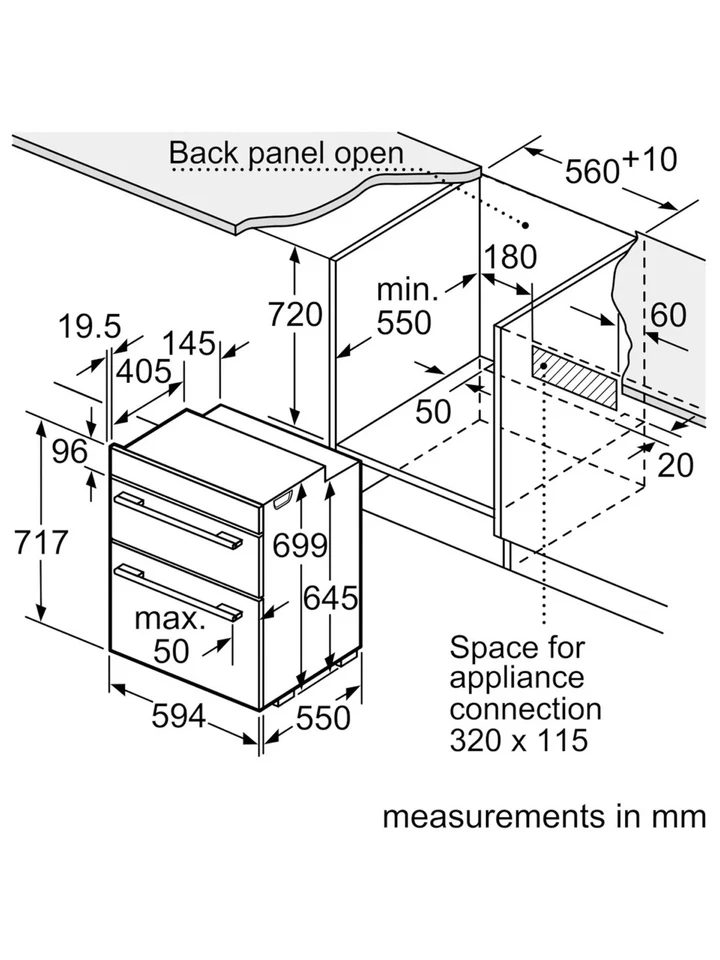 Four électrique double encastrable Bosch Série 4 NBS533BB0B Noir