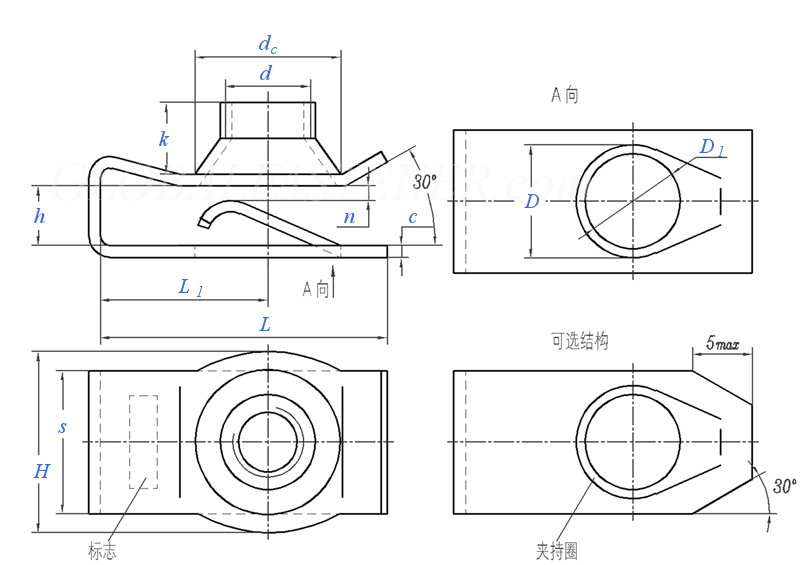 Écrou à tête hexagonale de type B pour ressort à lames M4-M10, en acier au carbone Q312, zingué coloré, série 4.8, pour usage industriel