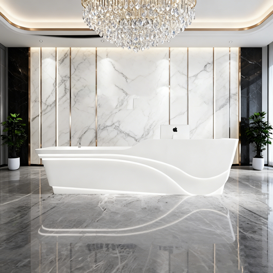 B030 Bureau d'accueil, comptoir de réception en pierre artificielle, design moderne et luxueux, résistant à la corrosion, hôtel, salon de beauté