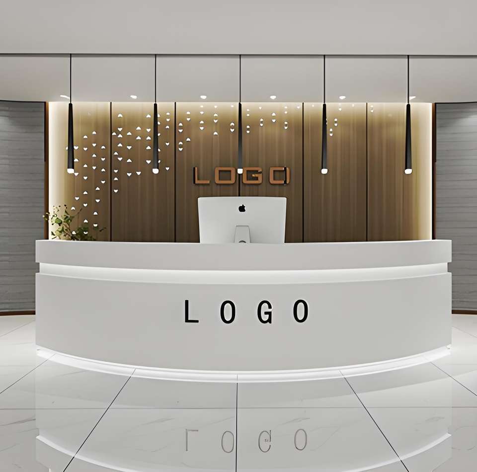 Comptoir de réception en forme d'arc simple et moderne B051 pour hôtel et salle de sport - Résistant à la corrosion, bureau d'accueil