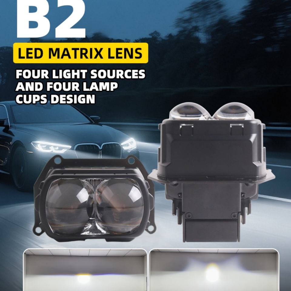 Phare auxiliaire de conduite automatique B2, lentille de projecteur Bi-LED 60W-68W, 4 coupelles de lampe, lentille de phare LED matricielle super lumineuse pour voitures