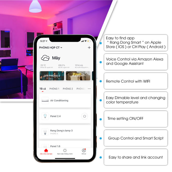 Ampoule Led RGB facile à variateur, contrôle Wifi, e27, 9W