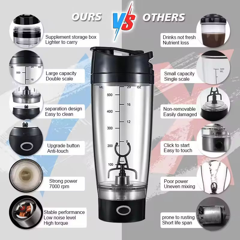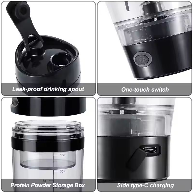 B22078R Tasse de mélange en plastique portable améliorée avec boîte de rangement-Blender, double échelle, conception détachable, facile à nettoyer, faible bruit