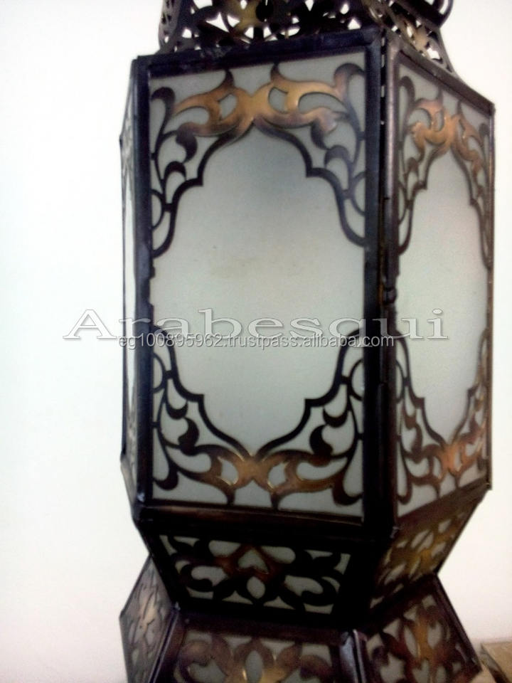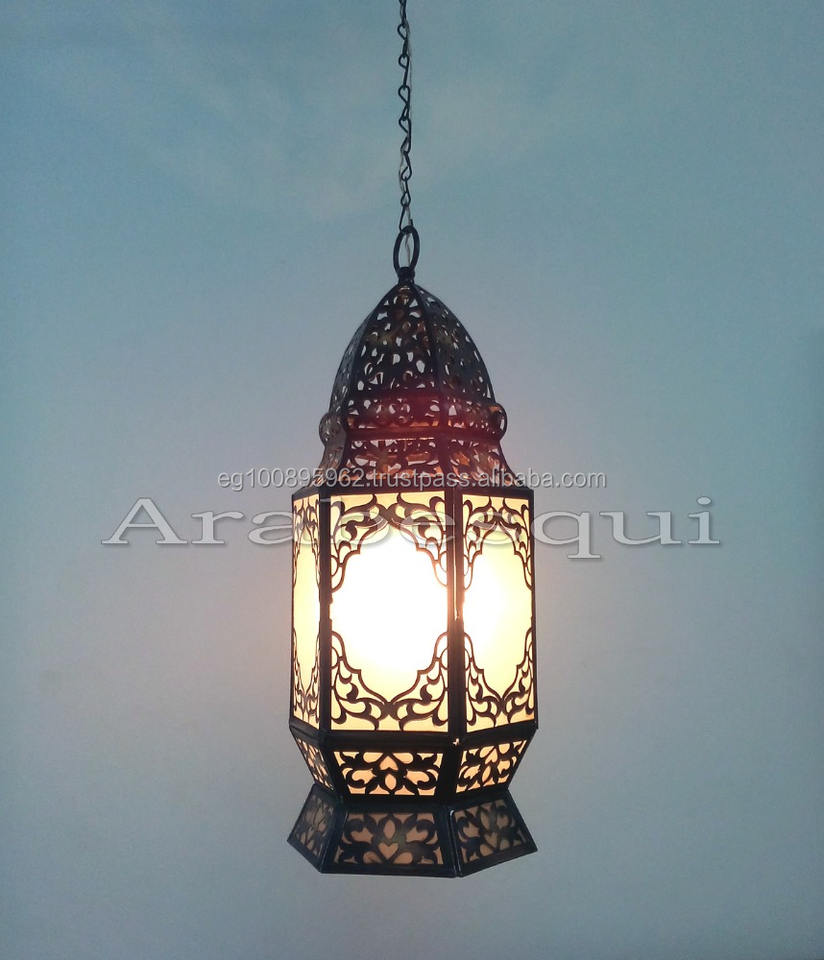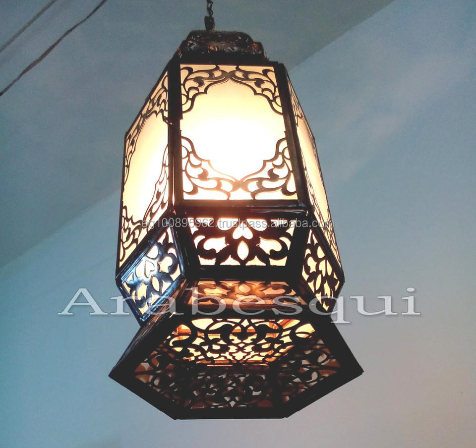 B221 Moroccan Style Modern Traditional Large Hexagonal Pendant Light Brass Copper Iron White Frosted Chandeliers Pendant Lights