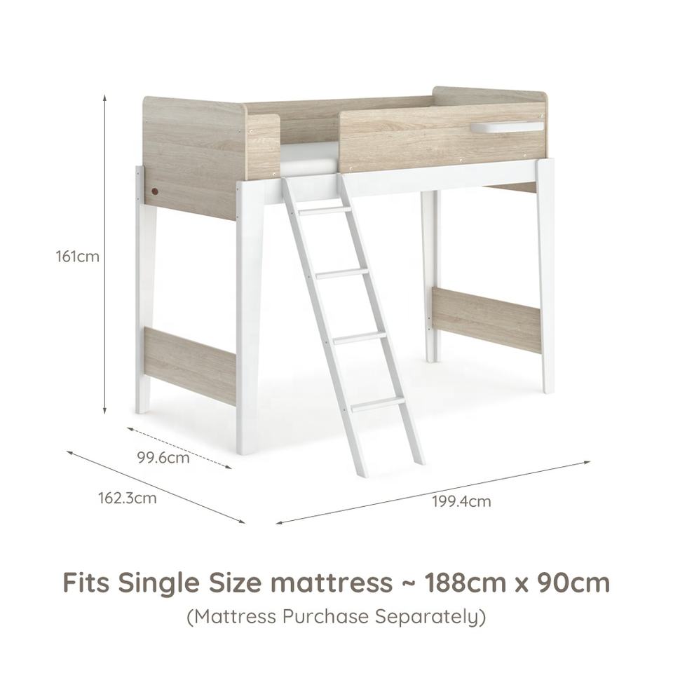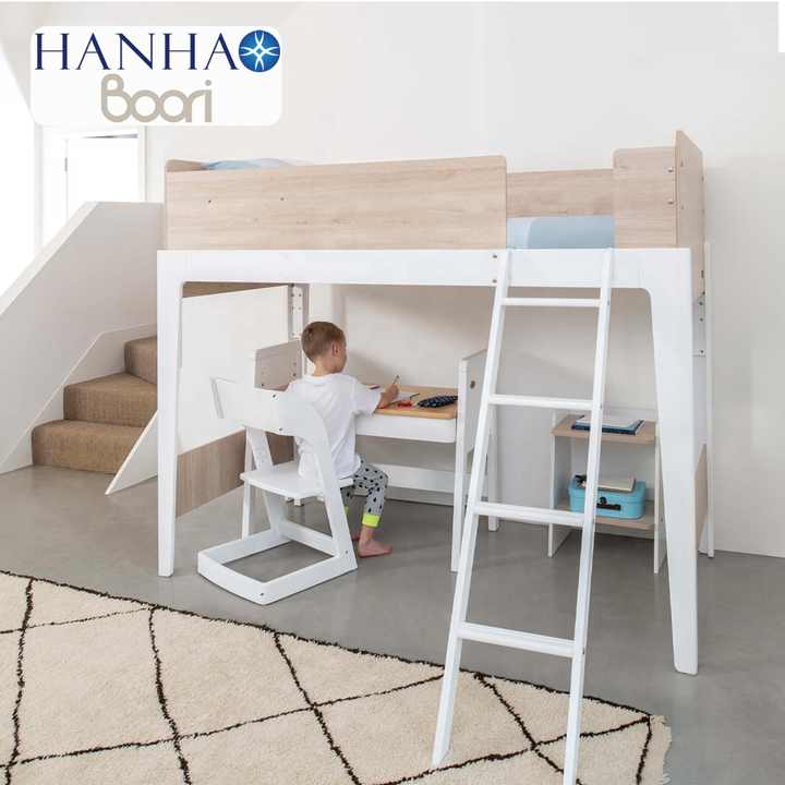 Description:Lit mezzanine en bois de coin pleine grandeur pour enfants avec escaliers