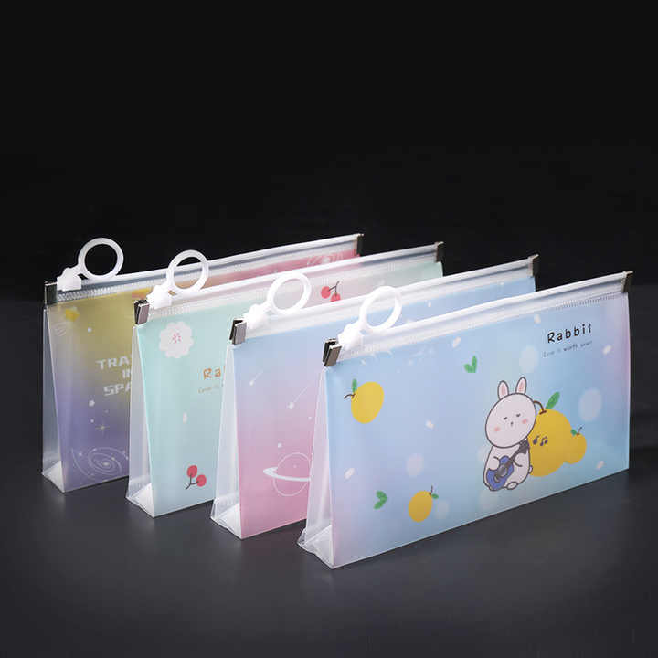 Étui à crayons mignon B6 pour étudiants, avec anneau de traction, étanche, scellé, sac de rangement givré, outil de papeterie pour les cours de soutien scolaire, en plastique