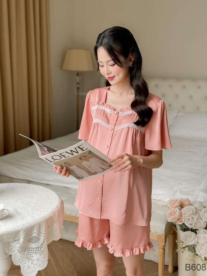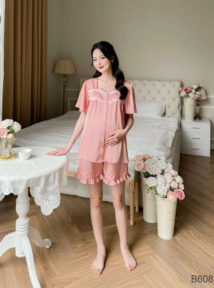 B608 Short en soie rose en dentelle anti-rétrécissement absorbant la sueur de créateur Ensemble de vêtements de maternité avec logo personnalisé Bon choix