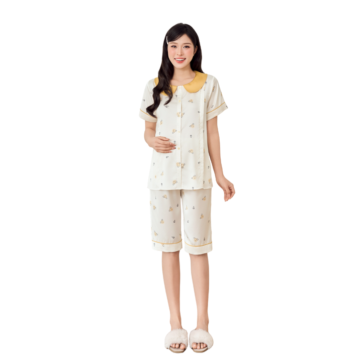 B914 Golden Rabbit Maternity Set Eco-Friendly Breathable Spandex/Polyester Fabric Top Zipper Pants Pockets Adjustable Elastic