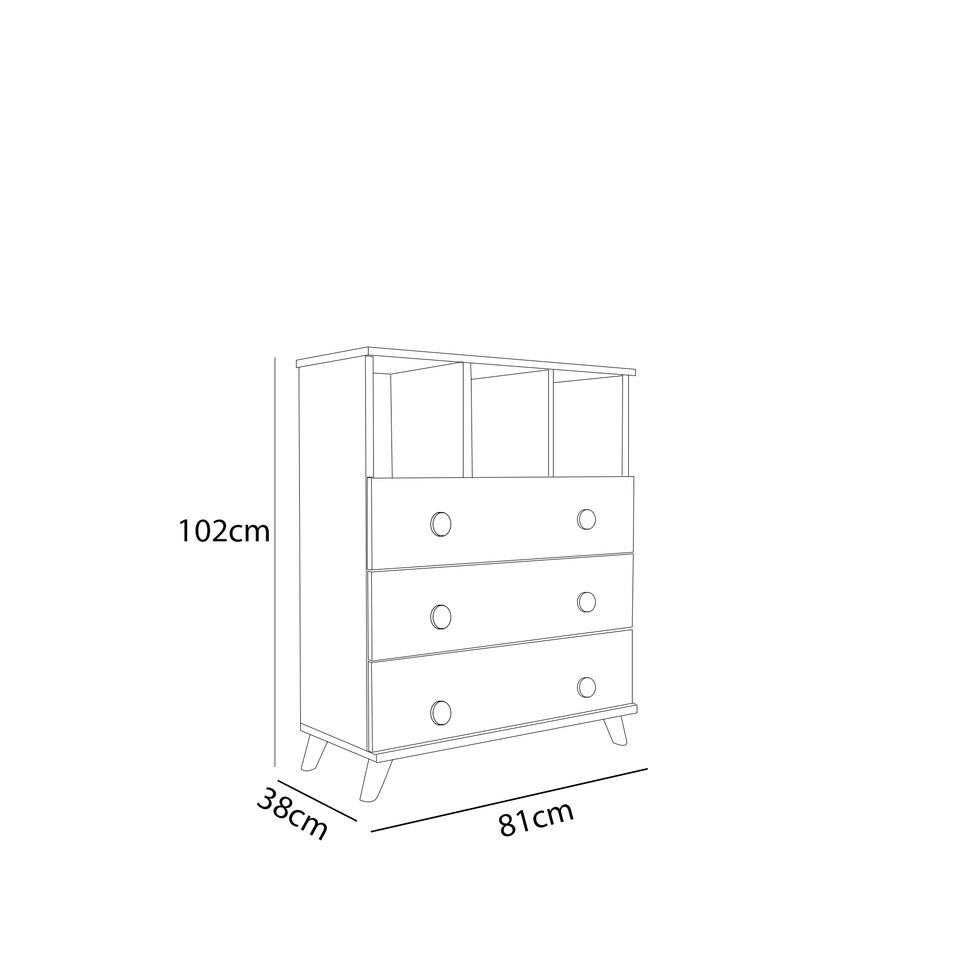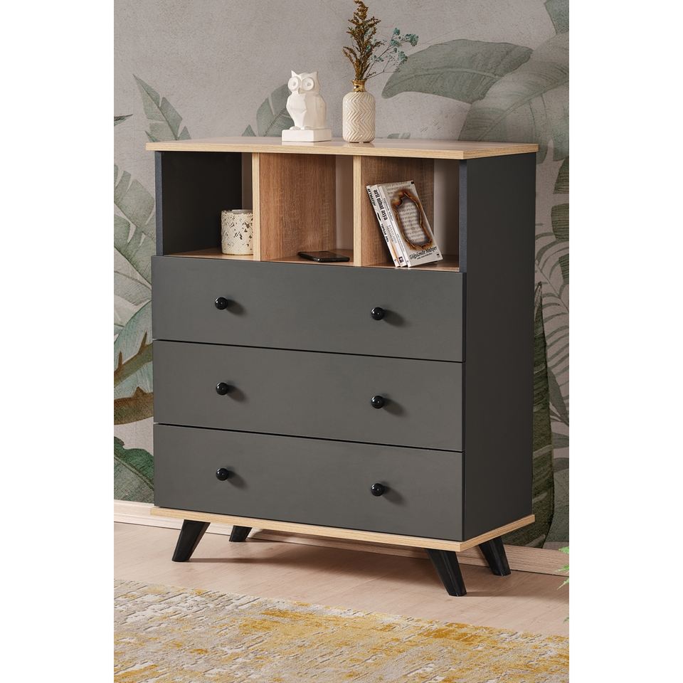 BABIL Modern Bedroom Dresser 3 Drawers 3 Open Shelves Oak and Metal Modular Storage Cabinet Nightstand for Living Room