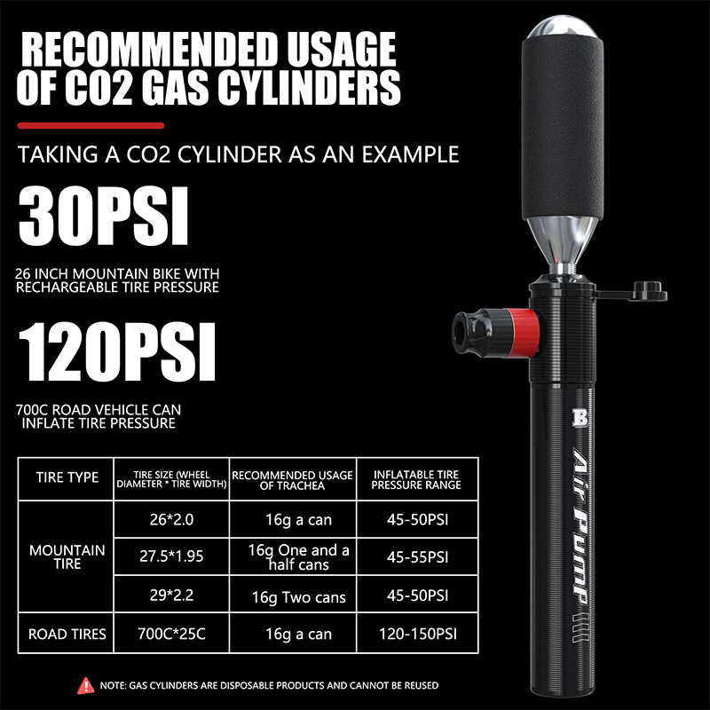 Pompe à air portable haute pression BAIMEI BIKING pour vélo et pneus, mini gonfleur CO2 pour le cyclisme