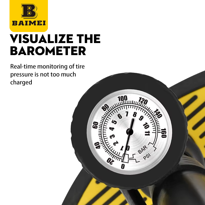 BAIMEI pompe à vélos Portable personnalisable pour avec baromètre 160PSI pompe à sol haute pression gonfleur à billes pompe à vélo