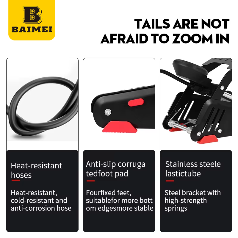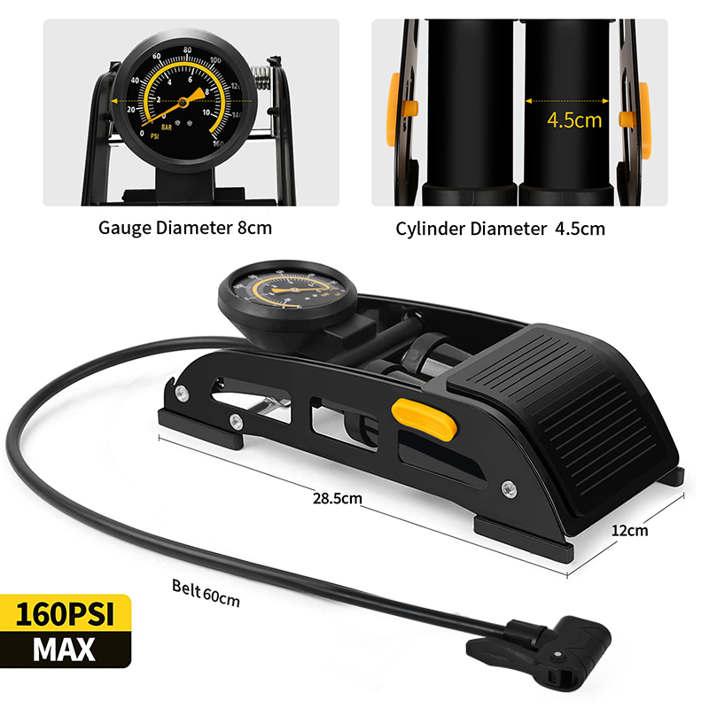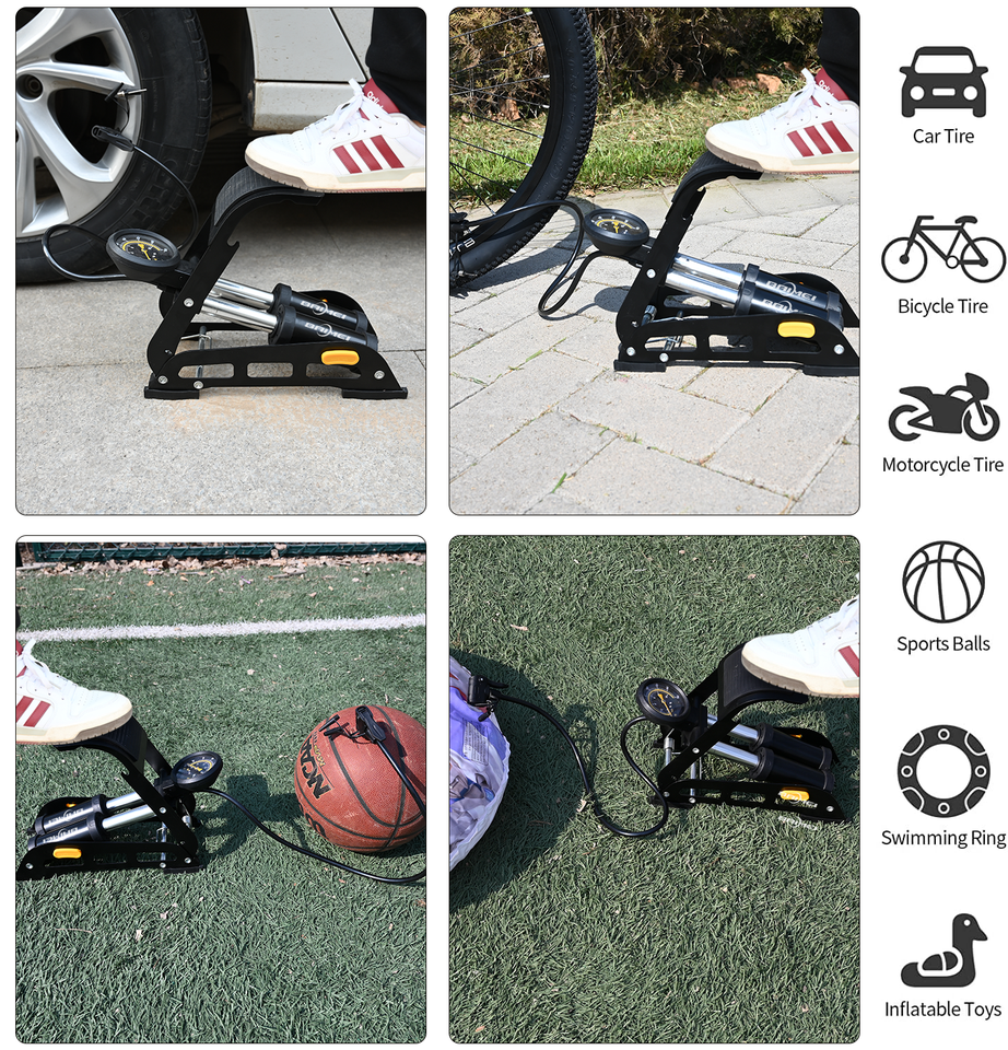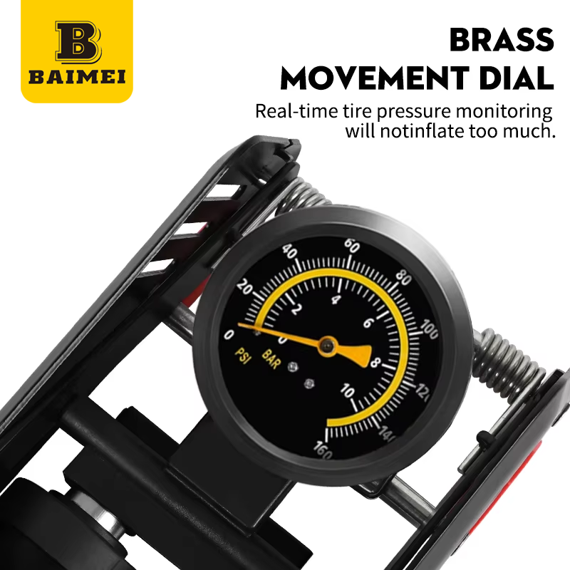 BAIMEI personnalisable Portable en acier double cylindre 160 PSI support de sol vélo pompe à pied pour vélos motos VTT jouets